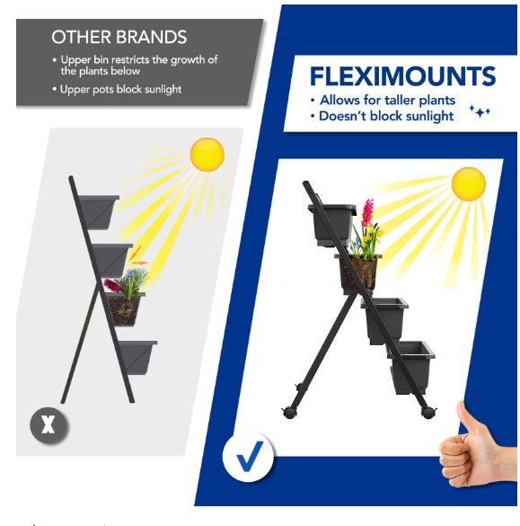 SOLUTIONS FOR TIGHT SPACES: FLEXIMOUNTS GARDEN BEDS ENSURE YOU HAVE A NEATER, MORE BEAUTIFUL GROWING SPACE AND PLENTY OF LIGHT FOR YOUR PLANTS.