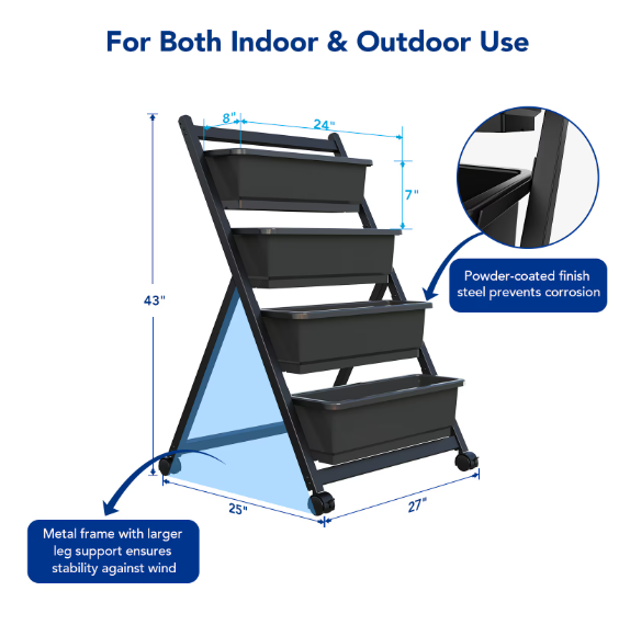 Well-designed and sturdy: The vertical garden bed is made of coated steel with a stable wide-angle support at the bottom to ensure a stable total weight of soil, water and plants when it is windy.